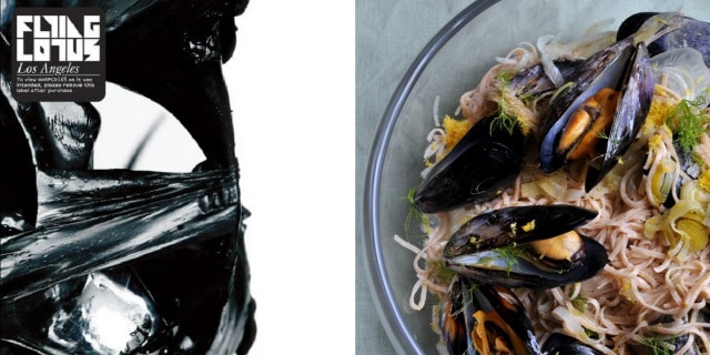 This homemade spaghetti with mussels, leeks, fennel and lemon is so amazingly “on”. When we prepared it, we used fresh mussels we had bought from an oyster farm along the Pacific, fresh fennel and homemade spaghetti. It was mesmerizingly tasty, and just felt so hip and modern and delicious. This dish features beautifully unique textures, intricate flavors, and a visually appealing presentation. That is why I’m pairing it with one of my favorite albums of the past few years: Los Angeles by Flying Lotus’ (a.k.a. FlyLo, a.k.a. Steven Ellison). Los Angeles artfully manages to encompass both the good and bad of the city it borrows its name from: it is simultaneously clean and grimy, safe and dangerous, conventional and experimental – but like city of Los Angeles – the album is also always modern, always viscerally textural and always exciting.