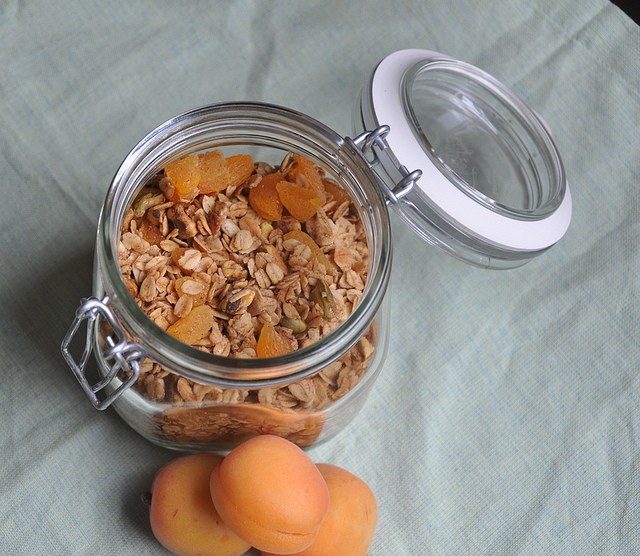 1. Granola and more granola. It’s unbelievable how easy it is to make granola at home (not to mention, cost-effective). It’s entirely customizable, fast, delicious, and can sit on your counter for weeks before you have to make a new batch. Buy oats from the bulk bin, stock up on a variety of dried fruits and nuts, olive and canola oil, a few simple spices, and go to town. Granola can last for weeks on your counter, or in the fridge.
