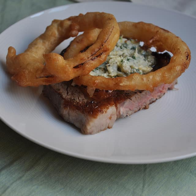4. Fried Onion Rings. I don’t fry things often, but I realized when I made this recipe that there are few things that are as delicious as fried onion rings with steak. They take only a few minutes to make and add such dimension to a plate. They’re finger-licking-good and can be eaten on their own, with some mustard, mayo or ketchup.