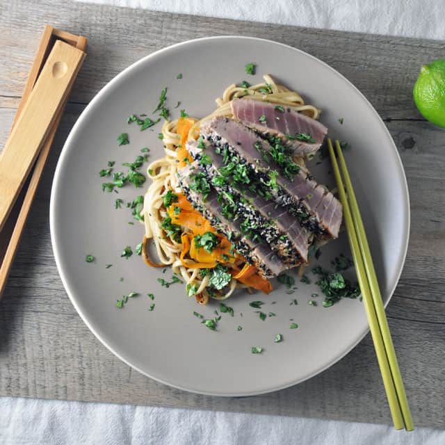 Nowadays, my universe is smaller than it used to be. I live in San Francisco, and I rarely take long night drives outside of San Francisco. So I don’t find myself seeking out those night driving anthems like I used to. But when I hear Feist’s Metals, I can’t help but think to myself: “This sounds like great night driving music.” It’s subtly nuanced and beautifully arranged with crisp production and a heavy, dark ambiance. When you imagine Feist recording this album, it’s nearly impossible to imagine her recording it anywhere other than a big, dark, spacious room. Even the lyrics suggest an increasing darkness and vast space: “Our love is not the light it was / When I walk inside the dark, I’m calm / Where we look for where it went / It’s only echoes in the melody.” And despite the melancholy of the lyrics, I notice that it’s in the dark that she feels peaceful and calm. So I think it is no accident that this is great music for a head-clearing night drive. And although I couldn’t say that the Sesame-Crusted Tuna recipe Kasey is featuring is somehow appropriate for nighttime cruising, Metals does pair well with the recipe nonetheless. It’s the crisp, cleanliness of the recipe and the subtle-nuances of the album that make them akin in my mind. The tuna is soft and tender, and it’s not a fussy recipe at all. Still, there is a simple elegance that makes it fully satisfying and irresistible. And the same is true of this album. It’s another album from 2011 that I can highly recommend.