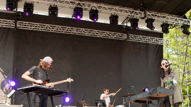 Takeaway: They are masters of modern day surfy, beach-pop. They make it look easy, and sound easier. Sure we could power dunk like LeBron and play music that sounds as clean, clear and true as Real Estate, if we wanted to. Sure we could. (After the set, bass guitarist Alex Bleecker and girlfriend were spotted enthusiastically popping their heads into the media tent. We shouted, ‘Great set, Alex!’ to which he spritely responded, ‘Thanks!’ and bounced off hand in hand to catch Grimes).