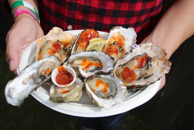 Photos include Del Popolo pizza, Drake’s Bay oysters, Baconland’s bacon flight, and Rich Table’s porcini donuts. Other highlights not pictured include Homeroom’s garlic mac n cheese, Humphrey Slocombe’s Outside Lands ice cream, Sierra Nevada’s Outside Lands saison, Tacolicious’ chicken tacos, 4505 Meats’ cheeseburgers, Wise Sons Deli’s pastrami cheese fries, and Farmerbrown’s Chicken and Waffles.