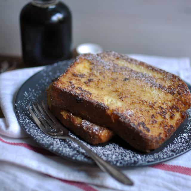 4. To serve, plate the French Toast and dust with powdered sugar.