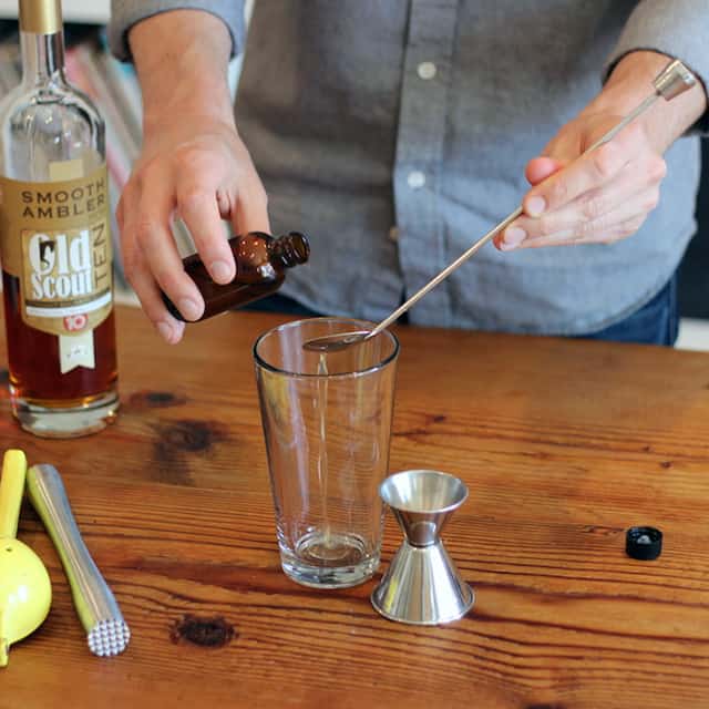 2 oz bourbon (I recommend using a high-proof bourbon, above 90 proof, such as Smooth Ambler or Bulleit Bourbon)